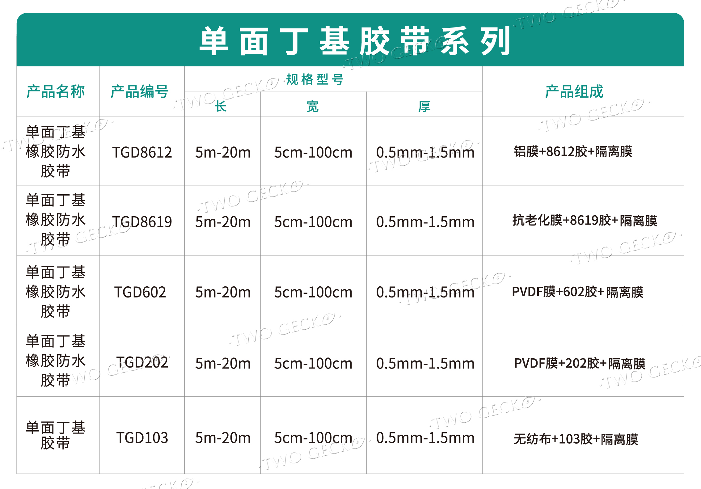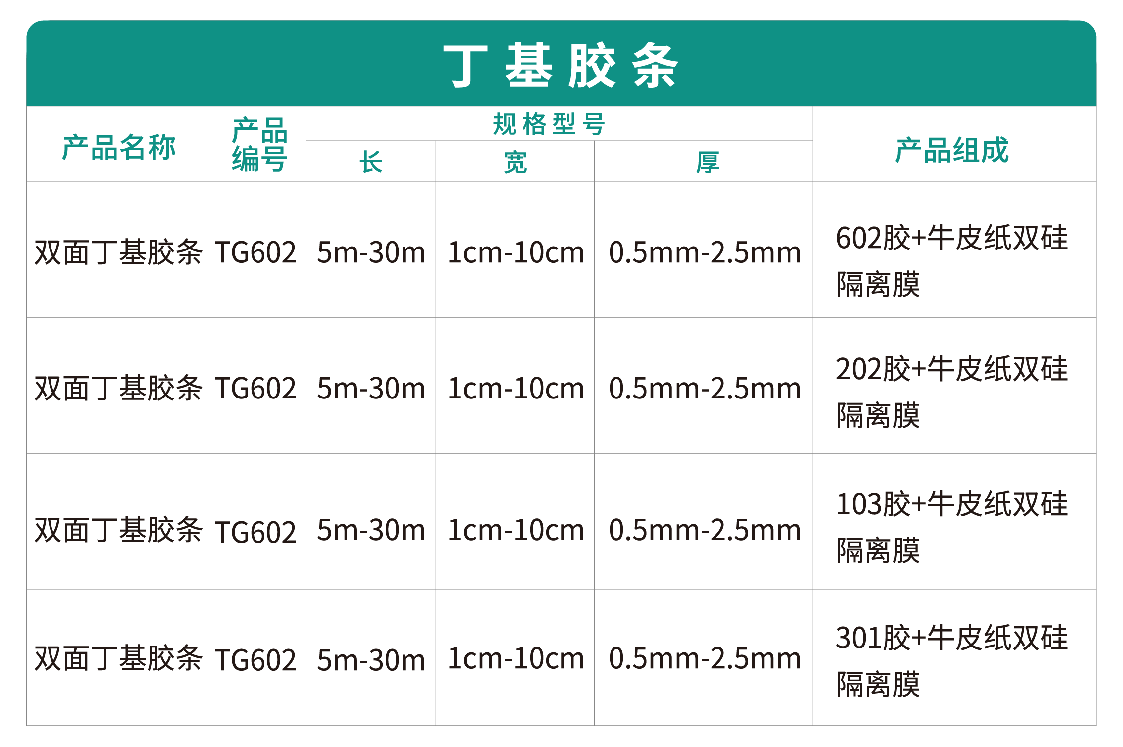 产品主料采用进口丁基橡胶,辅料也多为进口原料,产品具有阻燃性,长时间的粘性、弹性、密封性,是无毒无味很好的环保材料。产品对钢板、漆膜、木材粘附牢固,耐高温(170~190℃)、耐低温(-80~-40℃),延展率高,柔韧性好,具有良好的耐压、耐老化、耐紫外线、防渗、防锈、抗变、抗震等特性,可在-40~80℃环境下操作使用,适用于汽车车门防水膜、装饰件、车灯、车身板与骨架的减震、车身板缝、车身顶盖、法兰盘及油箱等部位。